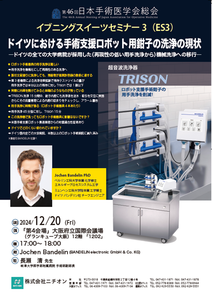 第46回日本手術医学会総会・学術集会展示に超音波洗浄器TRISONの製造元であるドイツ BANDELIN ELECTRONIC GmbH社が展示を行います。皆様のお越しをお待ちしております