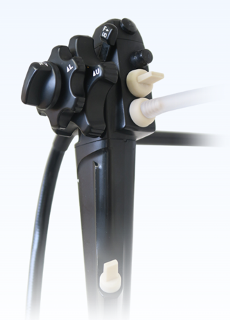 内視鏡との接続はAIRTIME本体に接続したホースと各メーカーの機種に応じたアダプターを内視鏡に取り付けて接続します