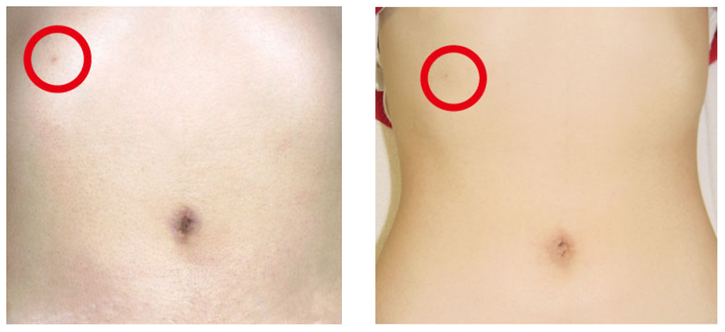 皮膚切開を伴う3㎜以上のポート創に比して著しく整容性が改善されます。