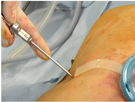 皮膚切開なしで、直接皮膚穿刺により挿入できます。
