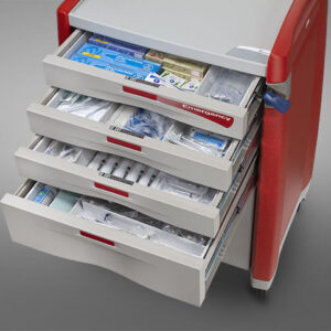 ブレイクアウェイ方式、そしてオプションのキーレスは施錠、開錠が簡単で救急時にすばやく対応。Avaloメディカルカートシリーズのキーシステムは各引出ごとに施錠を設定できます。